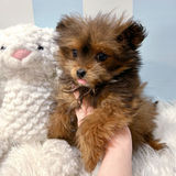 兄弟の中でも一番小柄! お茶目で愛嬌たっぷり🤍 オレンジセーブル系でお耳が立っています! 実物の方が可愛いです🥺 父 ポメラニアン パーティー 母 トイプードル レッド